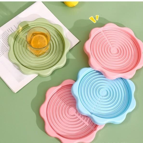 ポットマット 保温ボトル 水漏れ防止トレー 家庭用 キッチン ダイニング 卓上 防汚 断熱 コースター 円形 PP素材 ピンク グリーン ブルー