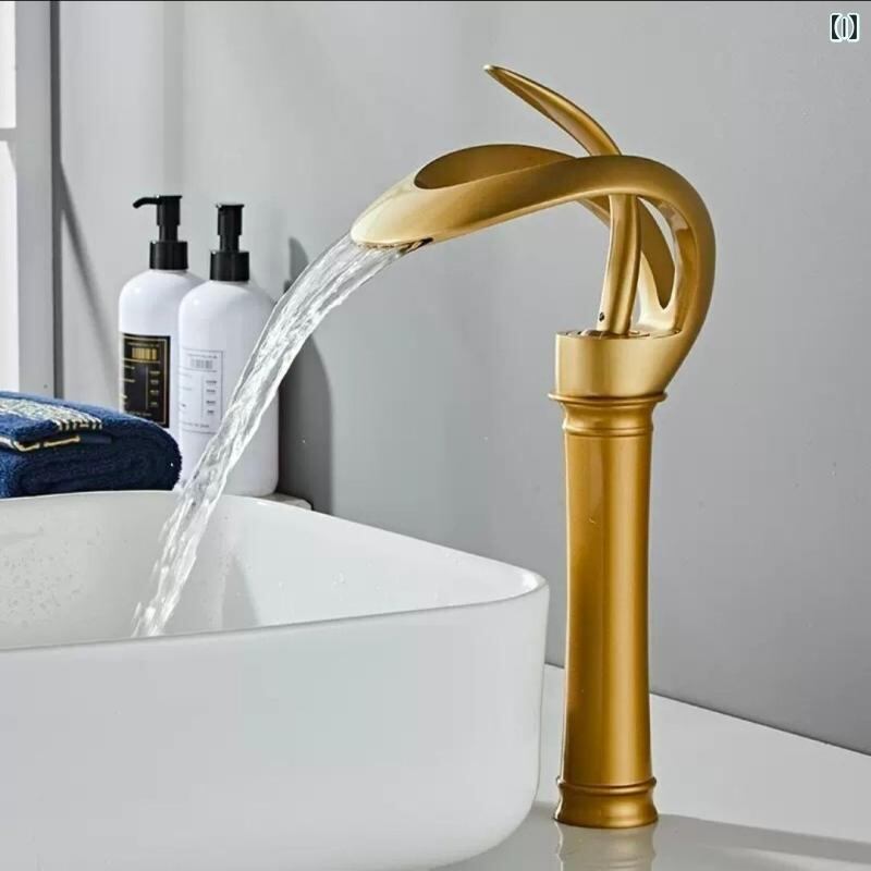 蛇口 真鍮製 レトロ アンティーク ブラック シングルレバー 混合水栓 洗面ボウル カウンター上置き型 ブロンズ色 セラミックバルブ 高級感 ウォーターフォール 滝口