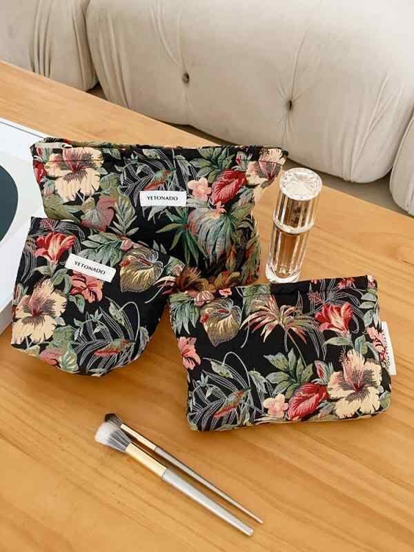 ポーチ レディース 女性用 レトロ ヴィンテージ 花柄 大容量 化粧 コスメ スキンケア トラベル 洗面用具 収納 旅行 出張 普段使い 持ち運び便利 ポリエステル キャンバス生地 高級感