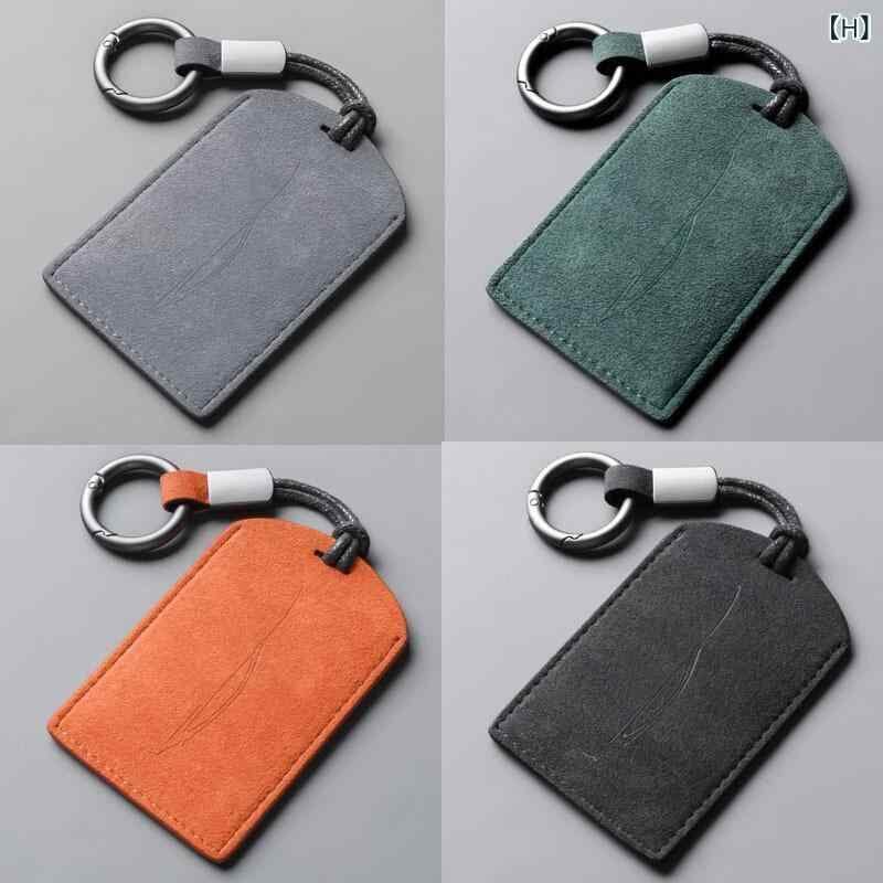 キーケース 男女兼用 カードケース フェイクスエード PUレザー NFC対応 キーホルダー パスケース 定期入れ ICカード スリム コンパクト ダークグリーン チャコールブラック