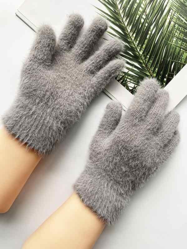 手袋 レディース 秋冬 貂毛風 ニット 裏起毛 暖かい 保温 防寒 防風 サイクリング 自転車 バイク 通勤 通学 普段使い かわいい 多色展開