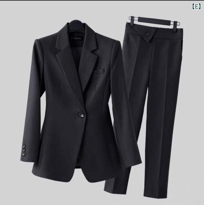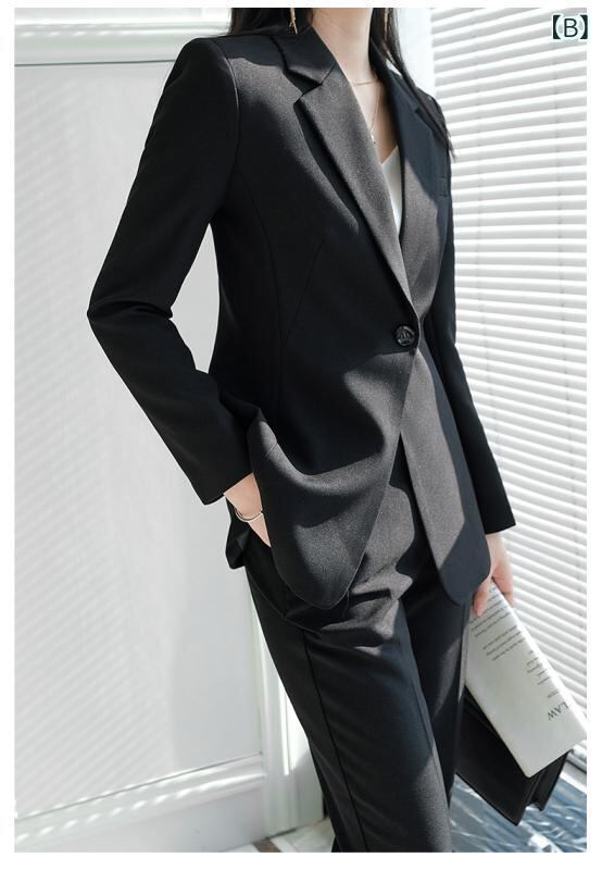 スーツ レディース 女性用 高級感 上品 エレガント ビジネス オフィス フォーマル 面接 通勤 セットアップ ジャケット 九分丈パンツ 長袖 ストレッチ 防シワ ポリエステル 秋冬 大きいサイズ