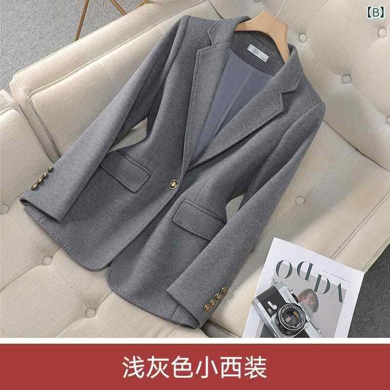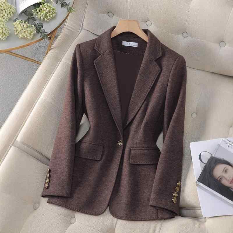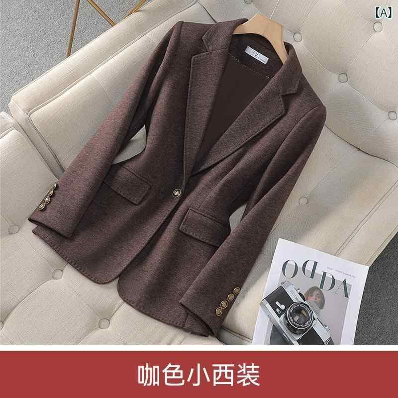 ジャケット レディース 高級感 上品 ブラウン 無地 アセテート ウール混 スリムフィット テーラードジャケット シングルボタン 長袖 小柄向け 通勤 オフィス きれいめ 秋冬