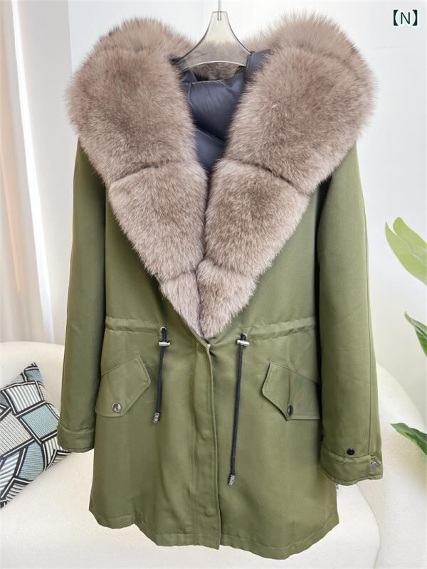 コート レディース 秋冬 フォックスファー モッズコート ミドル丈 フード付き ファー取り外し 2WAY 防寒 暖か 通勤 オフィス カジュアル アウター ブラック カーキ