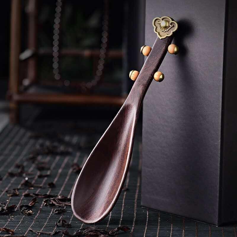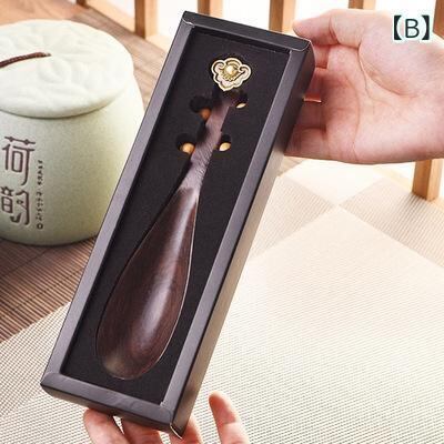 茶杓 黒檀材 無垢材 天然木 琵琶型 ユニークデザイン 茶道 喫茶 茶器 家庭用 普段使い お茶淹れ ティータイム 茶さじ 計量スプーン 高級感 上質 中華風 和モダン