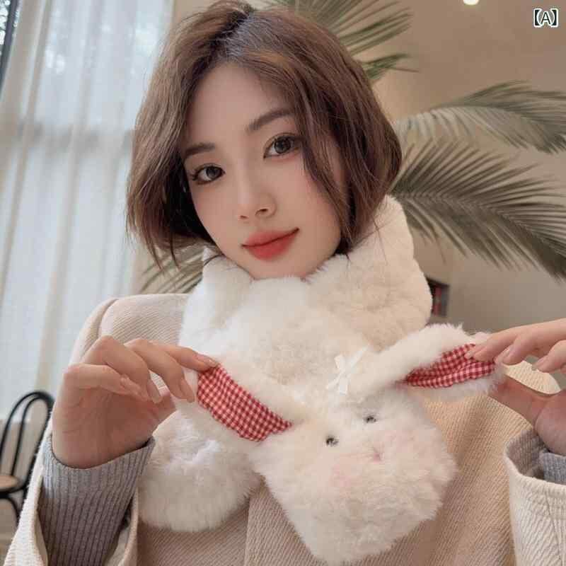 ネックウォーマー レディース 日本風 アニマル キャラクター 立体 子犬 ドッグ かわいい チェック耳 フェイクファー ラビットファー調 厚手 保温 防寒 スキー 冬物 ホワイト レッド ブルー