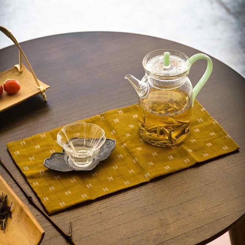 茶巾 綿麻 コットンリネン 禅スタイル 和風テイスト 格子柄 チェック 吸水性 ティーマット 急須用 茶卓拭き シンプル 上品 ナチュラル