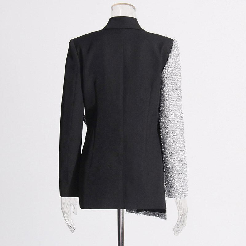 ジャケット レディース 欧米風 エレガント 通勤 ビジネス フォーマル テーラードカラー バイカラー 切り替え アシンメトリー スリムフィット ミドル丈 長袖 ポリエステル 秋冬 ブラック