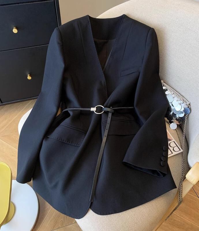 ジャケット レディース ノーカラー シングルボタン 長袖 ブラック ポリエステル 上品 質感 エレガント ゆったり 着痩せ 通勤 オフィス オフィスカジュアル 春秋