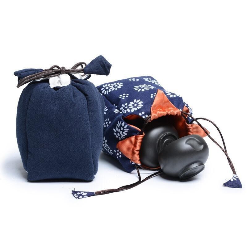 茶器 一壺二杯セット 携帯用 収納バッグ 旅行 トラベル アウトドア ピクニック 持ち運び 布製 綿麻 コンパクト おしゃれなケース ポーチ