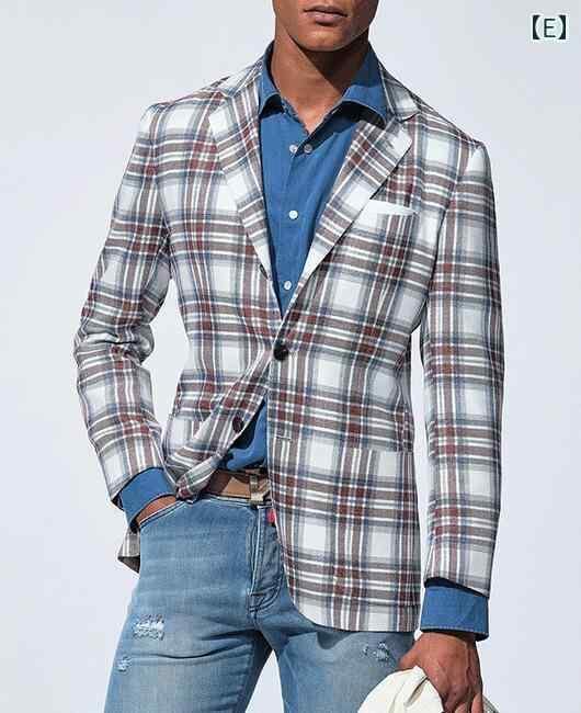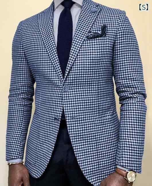 テーラードジャケット メンズ 欧米風 軽ビジネス カジュアル チェック柄 スリムフィット シングルブレスト 化繊混紡 耐摩耗性 オールシーズン ビジネス オフィス 普段使い