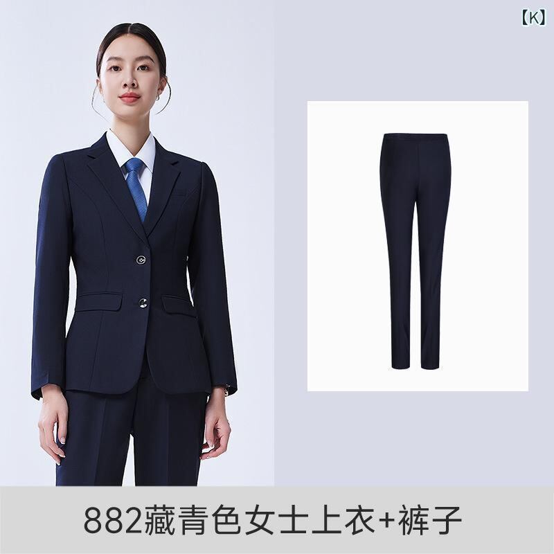 スーツ ユニセックス 男女兼用 ビジネススーツ オフィス セットアップ ジャケット スラックス 上下セット 濃紺 ネイビー 防シワ ノーアイロン イージーケア ストレッチ ポリエステル ピーチ素材 営業 通勤 フォーマル 制服 ワークウェア オールシーズ