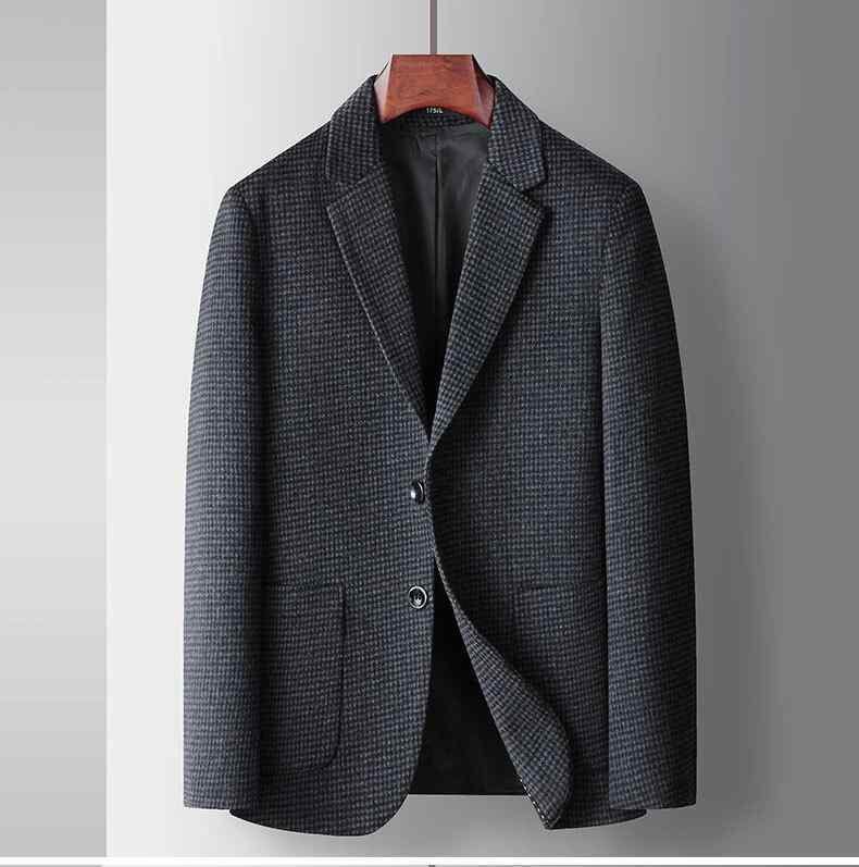 テーラードジャケット メンズ 男性用 千鳥格子 ハウンドトゥース ウール 羊毛混 秋冬 冬物 カジュアル ビジネス ライトビジネス 通勤 普段使い ストレートシルエット シングルブレスト 2つボタン シワになりにくい 上着 アウター グレー 長袖 レギュ
