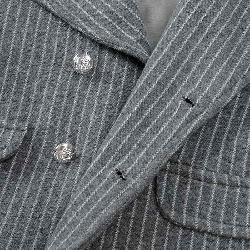 スーツ ベビー 男の子 1歳 誕生日 百日祝い 結婚式 発表会 フォーマル セレモニースーツ ブリティッシュスタイル スリーピース 厚手 コットン 綿 長袖 長ズボン シングルボタン ストライプ柄 グレー ダークブルー 冬