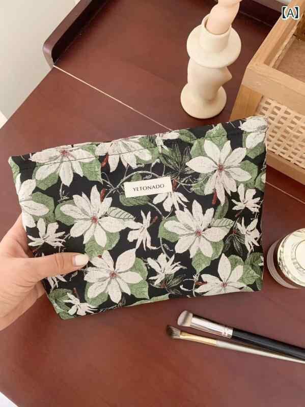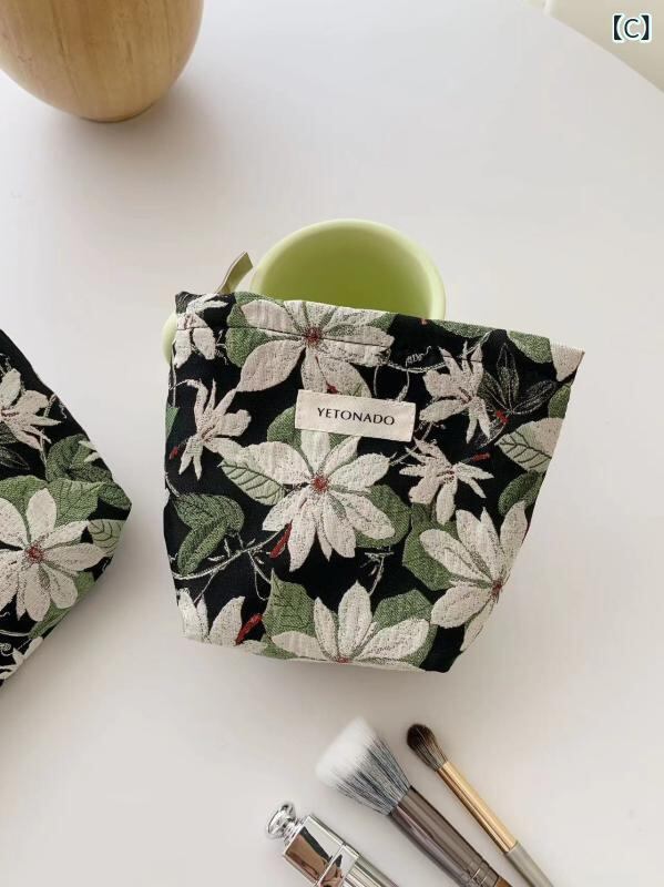 クラッチバッグ レディース セカンドバッグ 大容量 化粧ポーチ コスメポーチ 収納袋 黒地 緑白 ジャカード織 花柄 レトロ アンティーク 個性的 ユニーク ポリエステル 普段使い デイリーユース 春夏