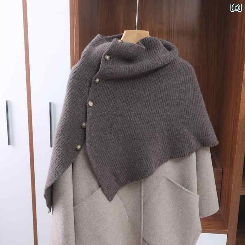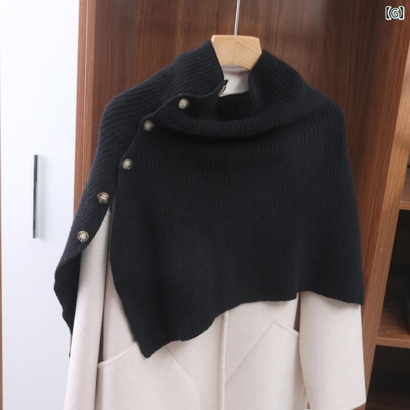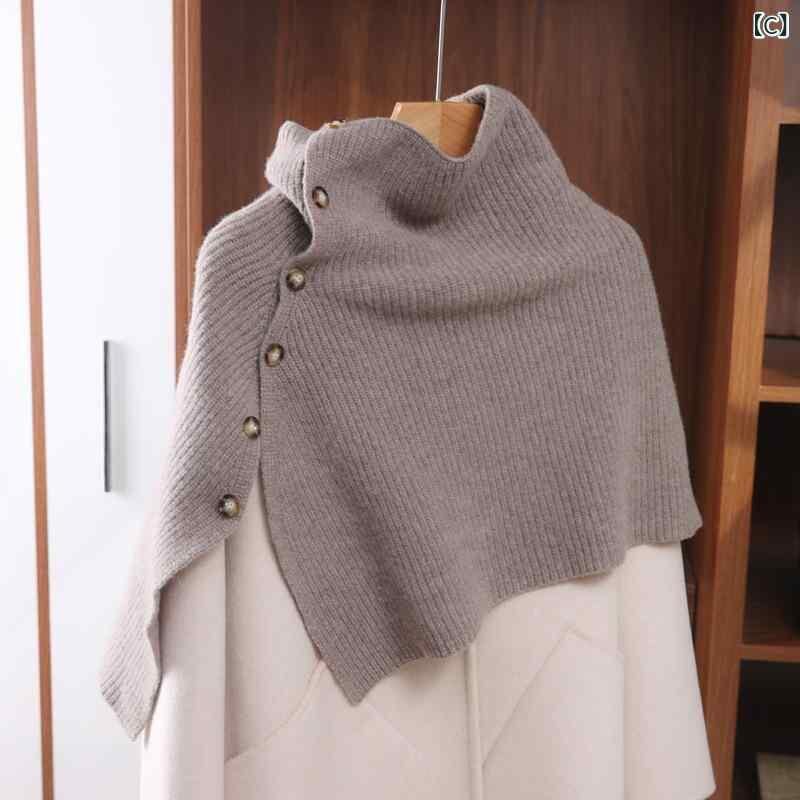 ポンチョ ユニセックス 男女兼用 ウール100% オーストラリア産 ニット バックル付き ショール ケープ ストール 肩掛け 保温 防寒 秋冬 カジュアル エレガント