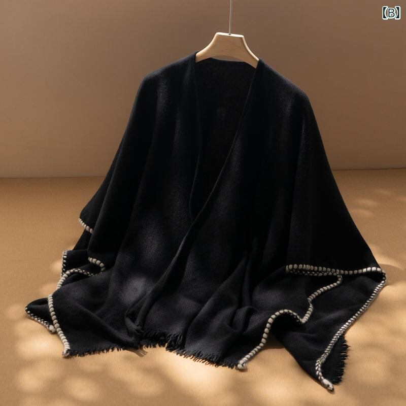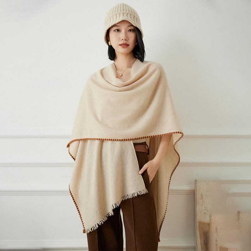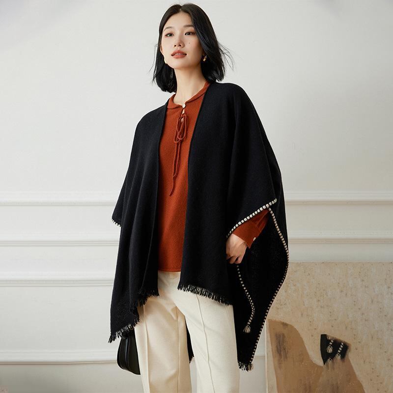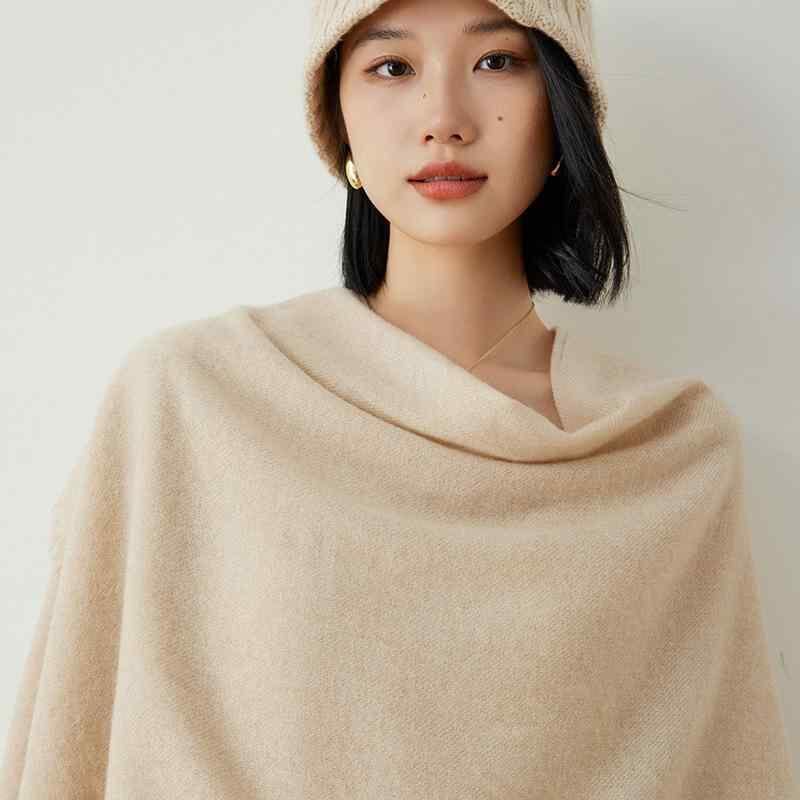 ショール レディース カシミヤ100% 大判 ストール ポンチョ ケープ 羽織り 多機能 万能 防寒 保温 あったか 幅広 フリンジ エレガント カジュアル スタイリッシュ