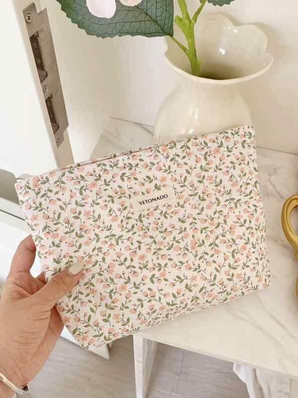 ポーチ 化粧ポーチ コスメポーチ 大容量 小花柄 コットン レトロ調 手提げバッグ コインケース 収納 トラベル 普段使い 高級感