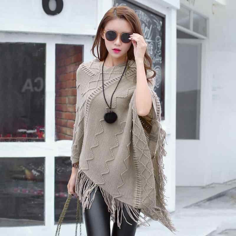 ポンチョ レディース プルオーバー ニットアウター ドルマンスリーブ フリンジ ゆったり ルーズフィット オーバーサイズ ケープ ショール 春秋 ポリエステル シンプル カジュアル 普段使い 保温 ブラック ホワイト カーキ