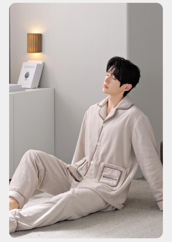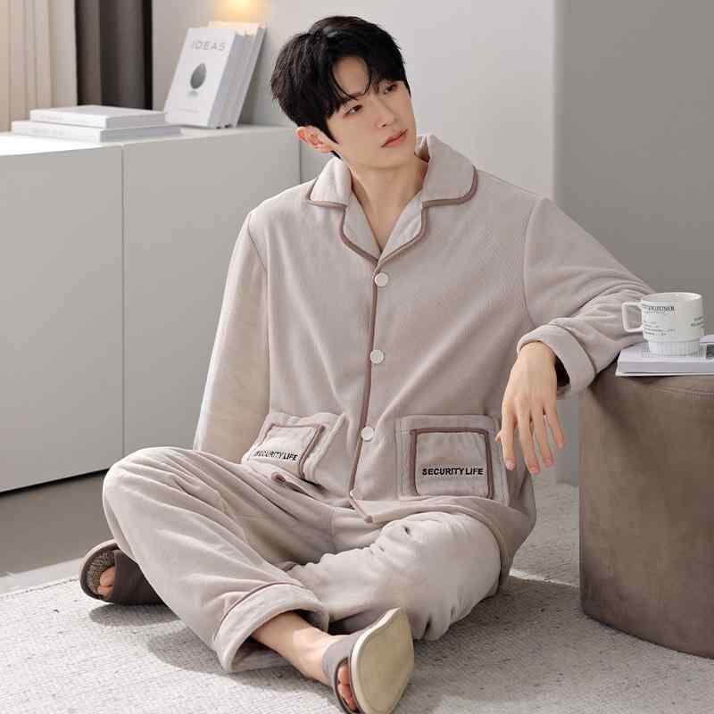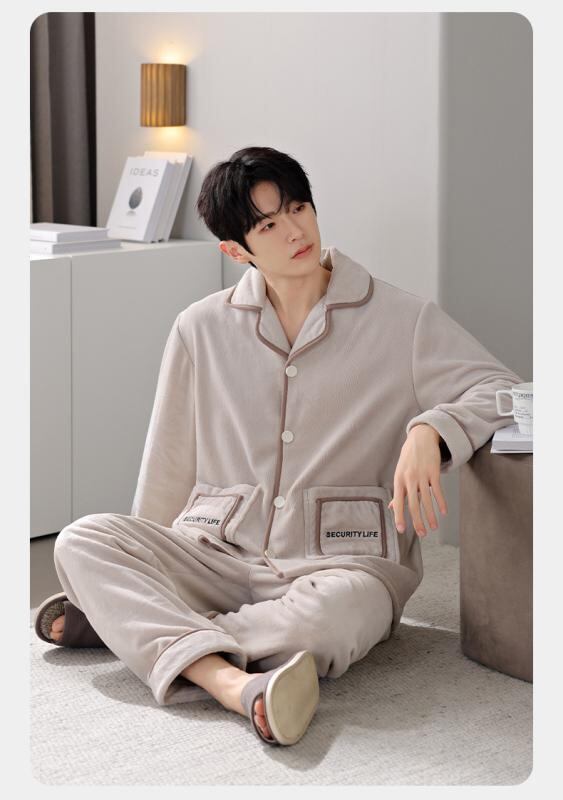 ルームウェア メンズ 男性用 秋冬 サンゴフリース 裏起毛 厚手 暖かい パジャマ 上下セット 長袖長ズボン 部屋着兼外出着 快適