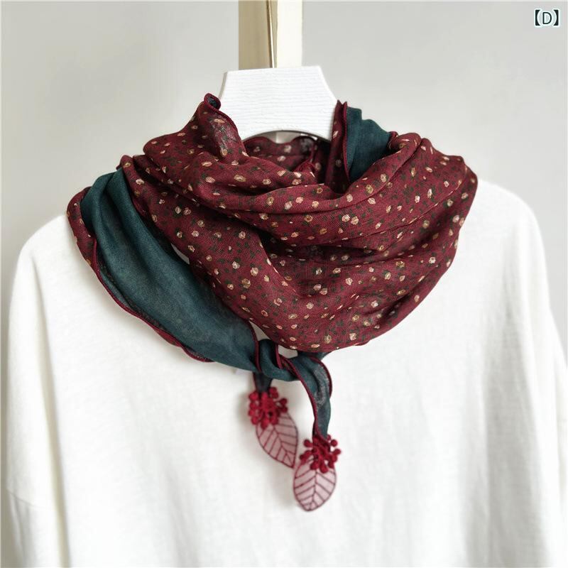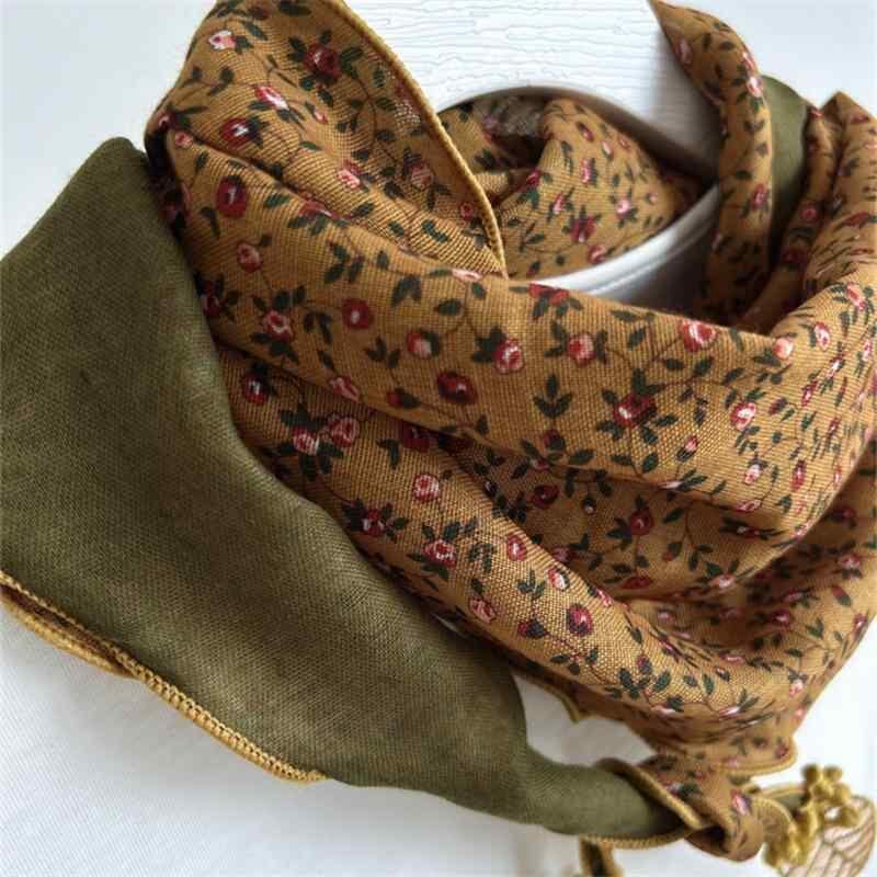 スカーフ 綿麻 小花柄 ダブル 三角巾 韓国風 春秋 ペンダント 配色 ひし形 ネックウォーマー マフラー ストール ショール 保温 日焼け対策 冷房対策 普段使い お出かけ