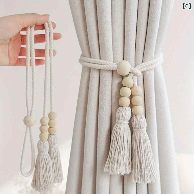 カーテンタッセル 韓国風 おしゃれ 布製 ファブリック 立体感 マグネット式 クリップ 留め具 インテリア 装飾 リビング 寝室 部屋飾り ベージュ カフェブラウン シンプル モダン 北欧風