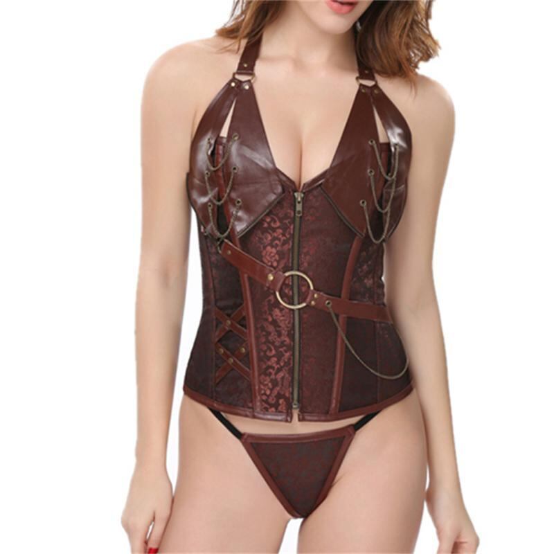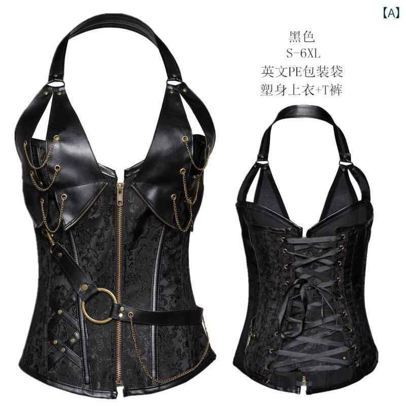 ビスチェ レディース コルセット ボディシェイパー 腹部引き締め ウエストシェイプ スタイルアップ セクシー レトロ クラシック パンク風 欧米風 ホルターネック チェーン飾り ボーン入り 調整機能付き コットンブレンド 大きいサイズ