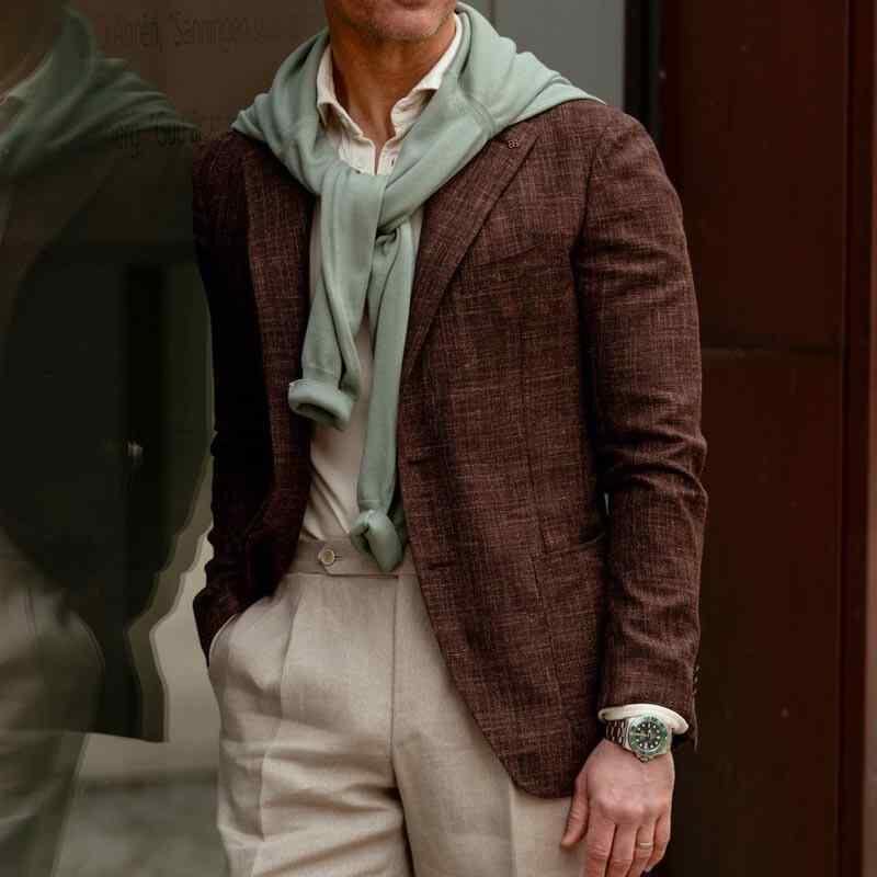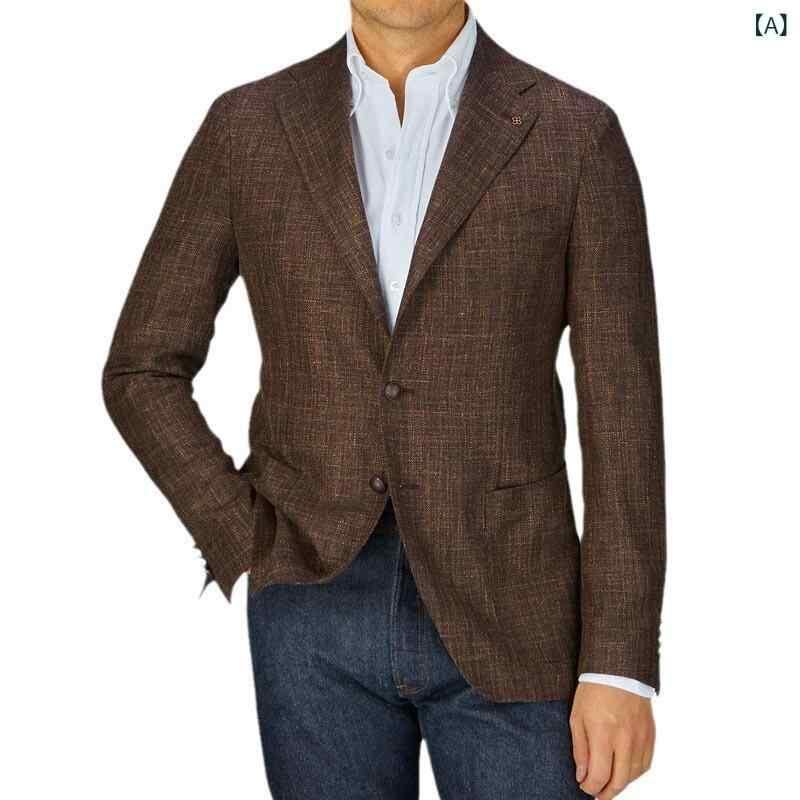 ジャケット メンズ 男性用 シングルブレスト 2つボタン スリムフィット カジュアル ビジネス フォーマル 春秋 ポケット付き ポリエステル コットンブレンド ダークブラウン