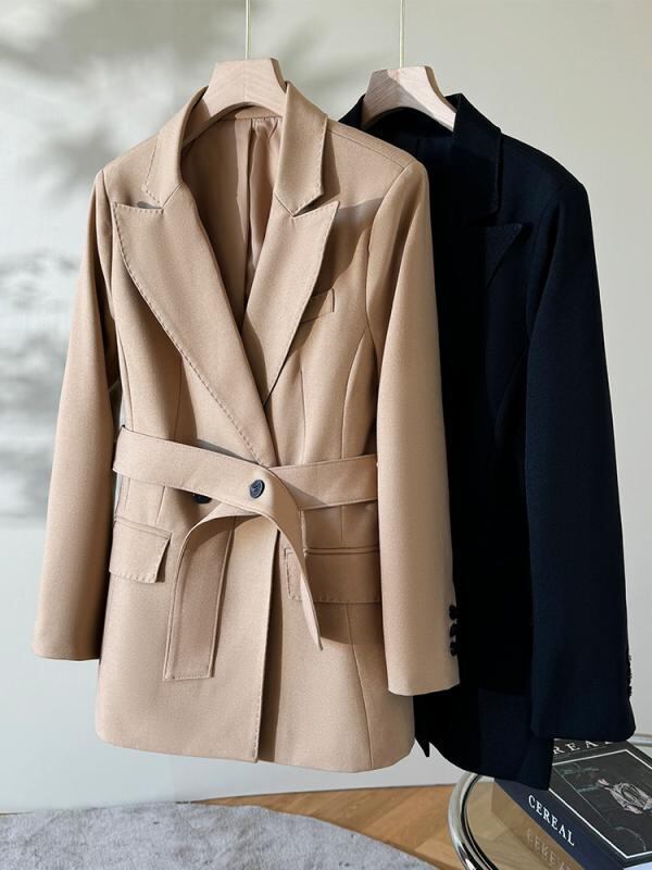 テーラードジャケット レディース 高級感 アセテート ウエストマーク ミドル丈 長袖 シングルボタン 秋冬 通勤 オフィス きれいめ 上品 オフィスカジュアル ブラック カーキ