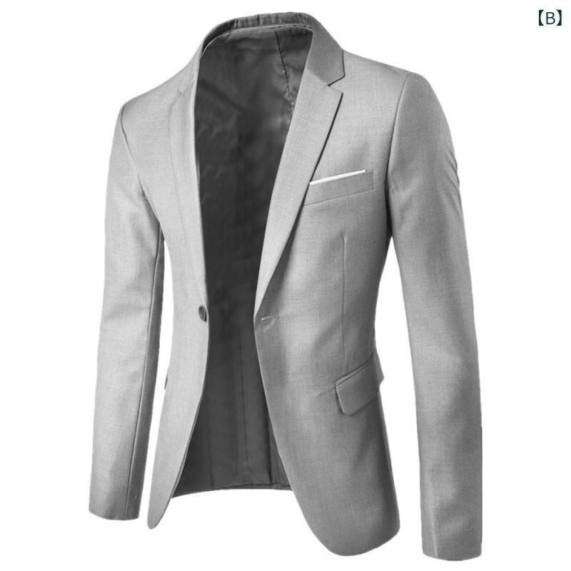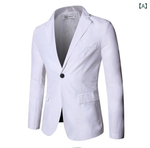 ジャケット メンズ 男性用 春秋 ビジネス フォーマル カジュアル スリムフィット 細身 韓国風 ウォッシャブル 無地 シングルブレスト ポリエステル コットン混 ノッチドラペル 長袖 普段使い