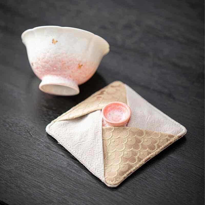 茶器アクセサリー 蓋碗の蓋 保護カバー 新中式スタイル 収納ポーチ 携帯用 トラベル 耐衝撃 厚手 ファブリック 錦織り 茶道用