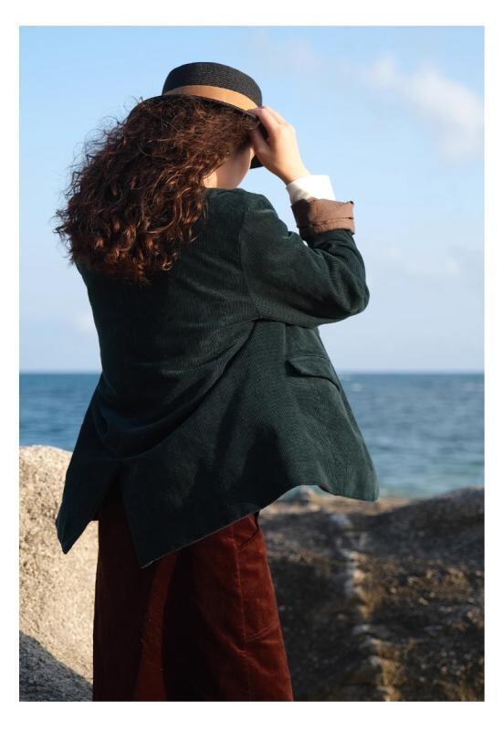 ジャケット レディース 秋冬 綿 コーデュロイ テーラードジャケット カジュアル レトロ クラシック バイカラー 配色 フォレストグリーン ダークグリーン 長袖 ミドル丈 シングルブレスト 着回し