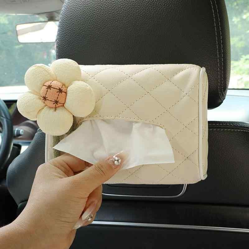 ・主な素材: 皮革・カテゴリ: ティッシュケース・カラー展開: ホワイト, ブラック・柄: 奶油小熊, 奶粉小兔, 棕色小花, 米色小花, 奶白五瓣花, 姜黄向日葵