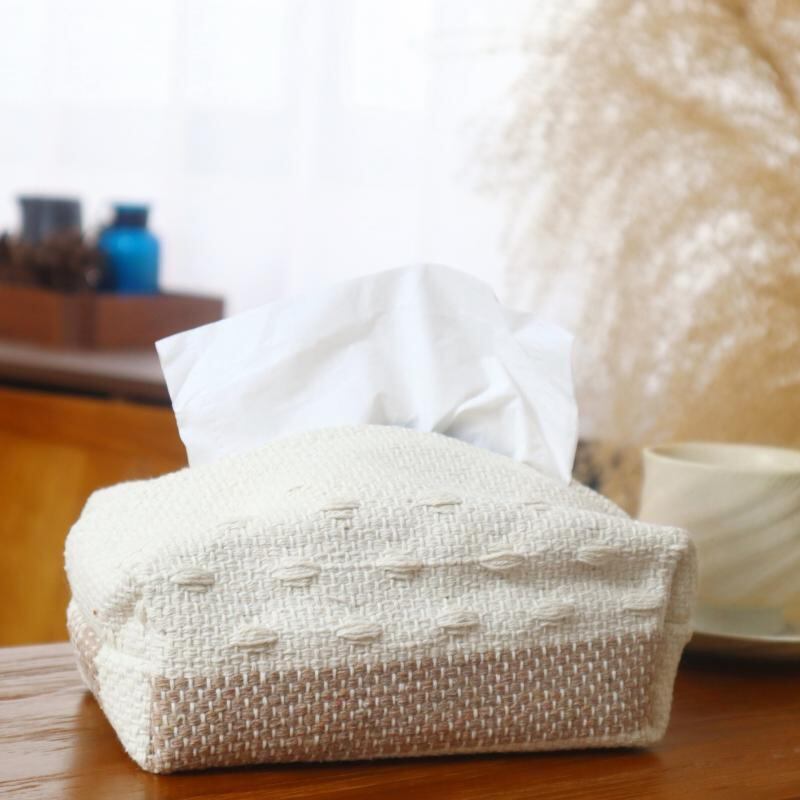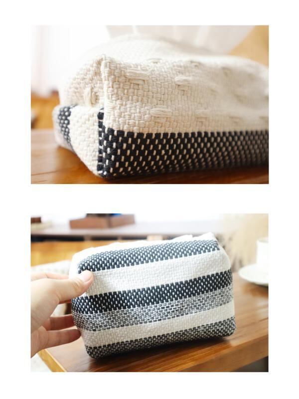 ティッシュケース 侘び寂び風 北欧 配色切り替え 綿ポリエステル混紡 編み込み ファブリック デザイン 卓上 車載 家庭用 リビング インテリア雑貨