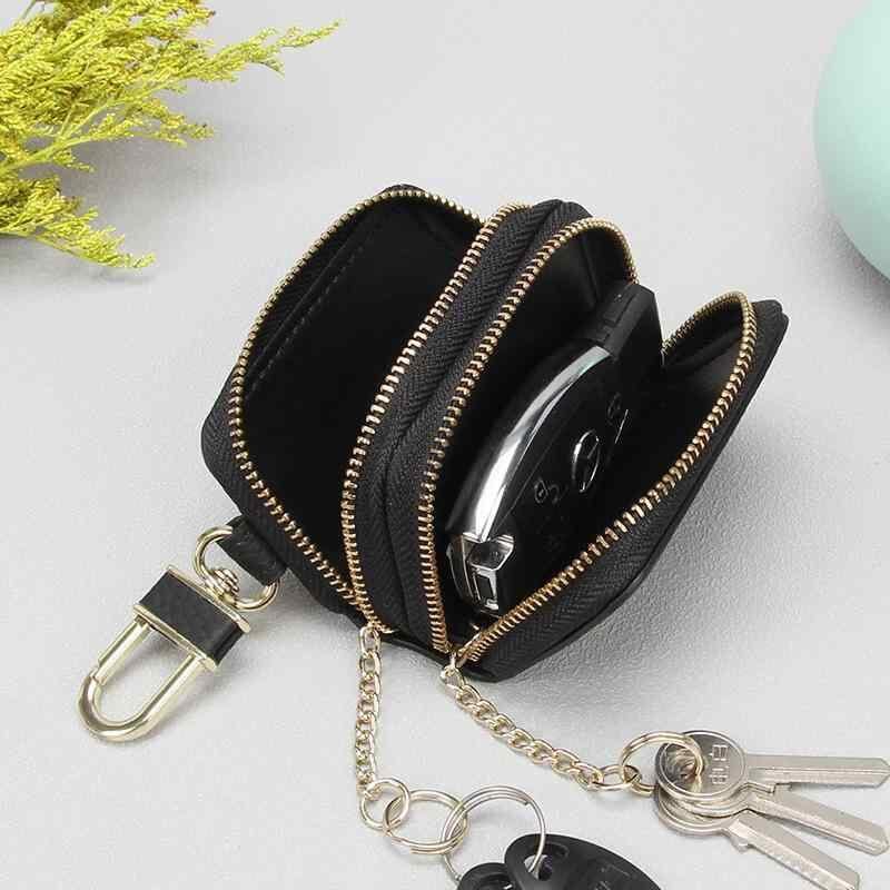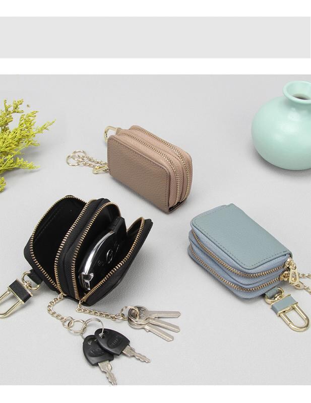 キーケース 男女兼用 本革 牛革 レザー ダブルファスナー スマートキー対応 車用 鍵入れ マット ライチ柄 シボ加工 多機能 普段使い 通勤 ビジネス カジュアル スタイリッシュ シンプル