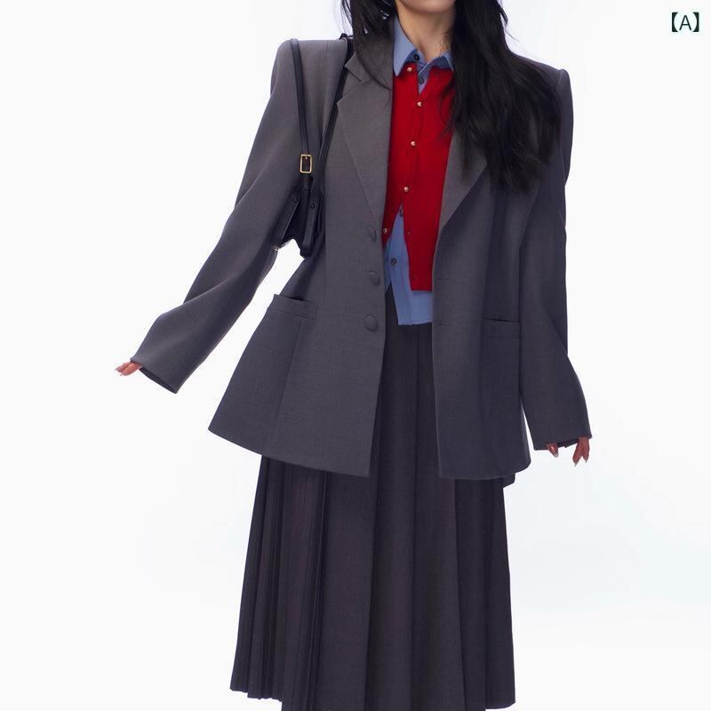 レディース テーラードジャケット オーバーサイズ ビッグシルエット ゆったり ダブルボタン カジュアル スクール風 レトロ ポリエステル素材 秋冬 グレー チョコレート