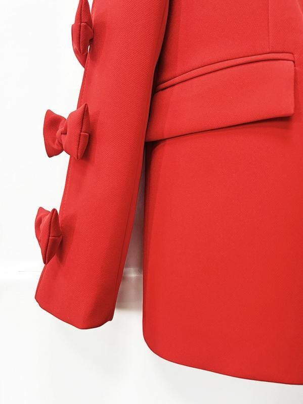 ["・柄: 無地","・スタイル: スリムフィット","・着丈: 普通丈","・ネックライン: テーラードカラー","・袖丈: 長袖","・袖タイプ: ペタルスリーブ","・人気要素: ボタン","・加工: 複合加工","・生地名: コットン混紡","・主な素材: 綿、ポリエステル混紡","・カラー展開: レッド、ブラック","・サイズ展開: S、M、L、XL","・性別: レディース","・カテゴリ: ショート丈ジャケット","・前立て: ダブルブレスト","・スタイル: エレガント、通勤"]