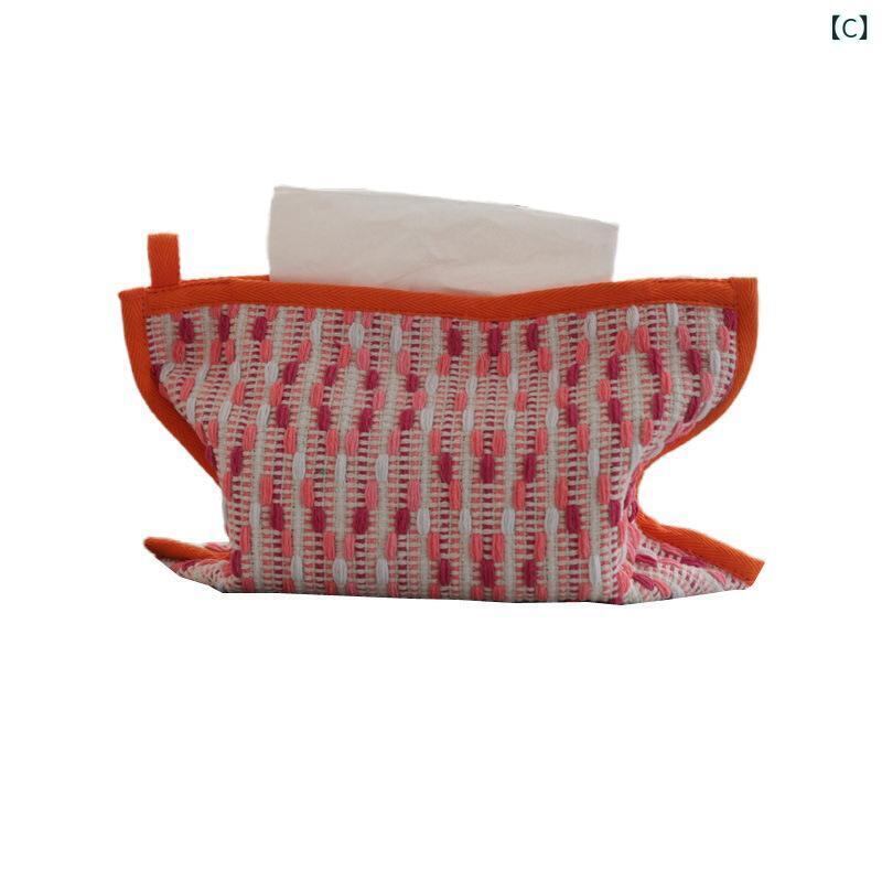 ティッシュケース コットン編み ファブリック 吊り下げ式 車内用 卓上 北欧風 ライン柄 ティッシュボックス リビングダイニング おしゃれ インテリア 収納ボックス