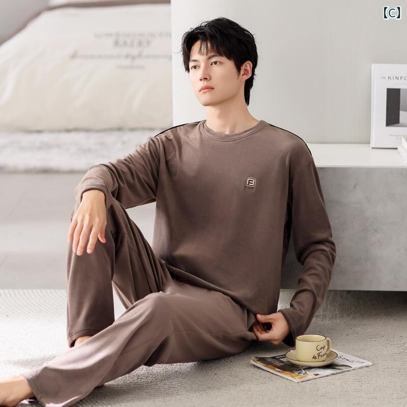 メンズ パジャマ 男性用 コーラルベルベット 裏起毛 厚手 あったか 保温 防寒 秋冬 長袖 長ズボン 上下セット セットアップ 大きいサイズ ルームウェア 部屋着 ナイトウェア 快適