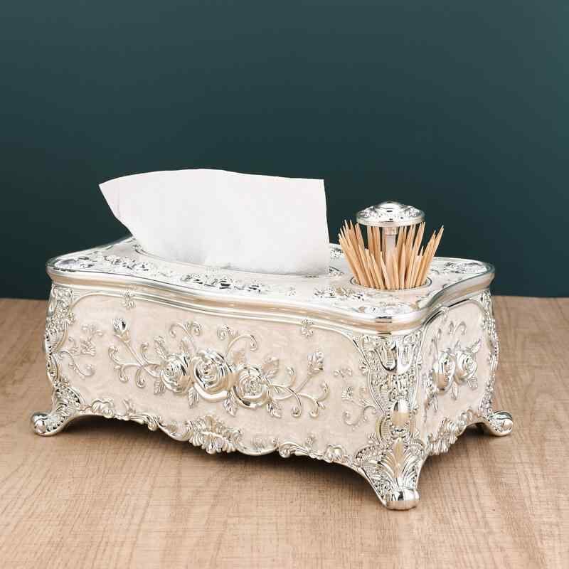 ティッシュケース ヨーロピアン レトロ 家庭用 リビング ダイニング センターテーブル アイデア 上品な高級感 オブジェ 爪楊枝入れ一体型 ゴールド ホワイト プラスチック製