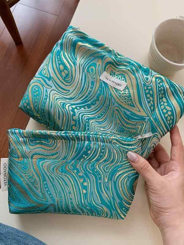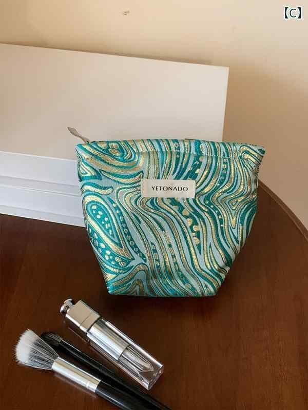 化粧ポーチ レディース 女性用 ジャカード織り柄 高級感 大容量 コスメポーチ 収納 整理 トラベル クラッチ バッグインバッグ ハンドバッグ 普段使い ポリエステル キャンバス グリーン系 携帯用