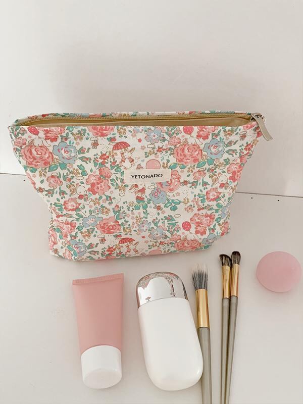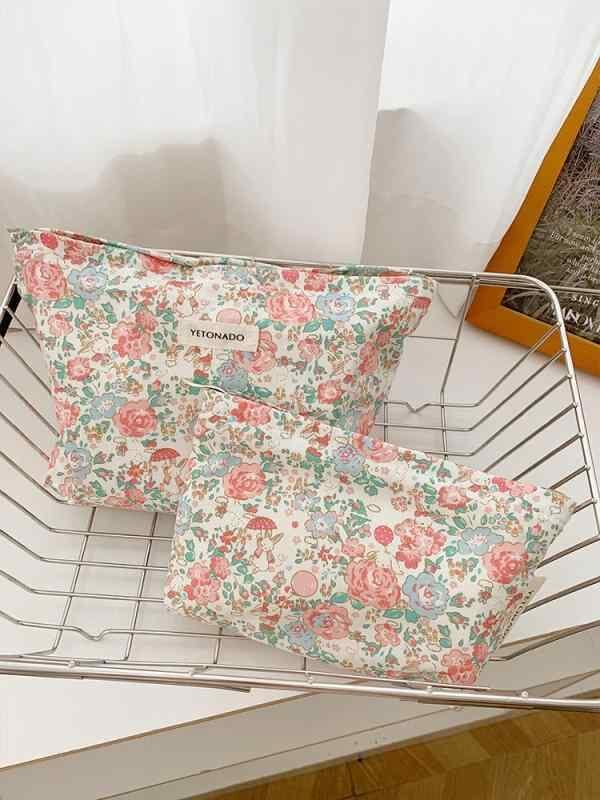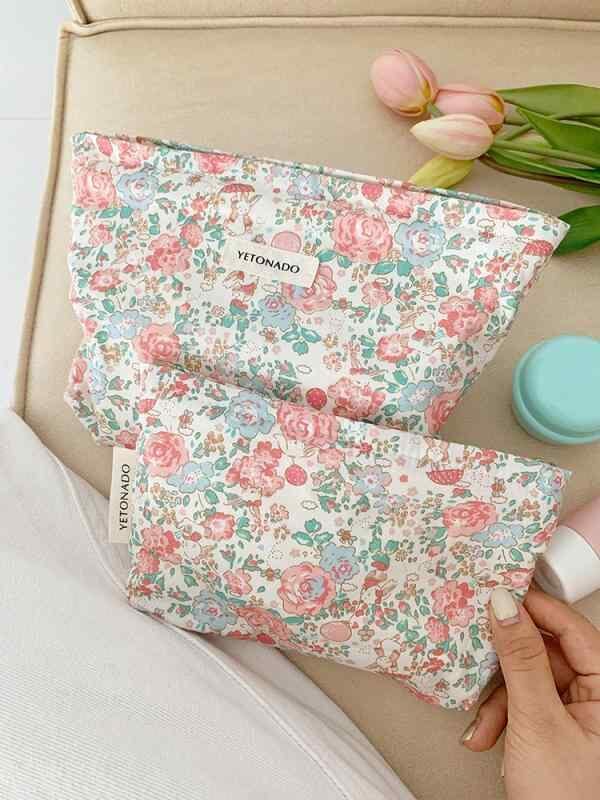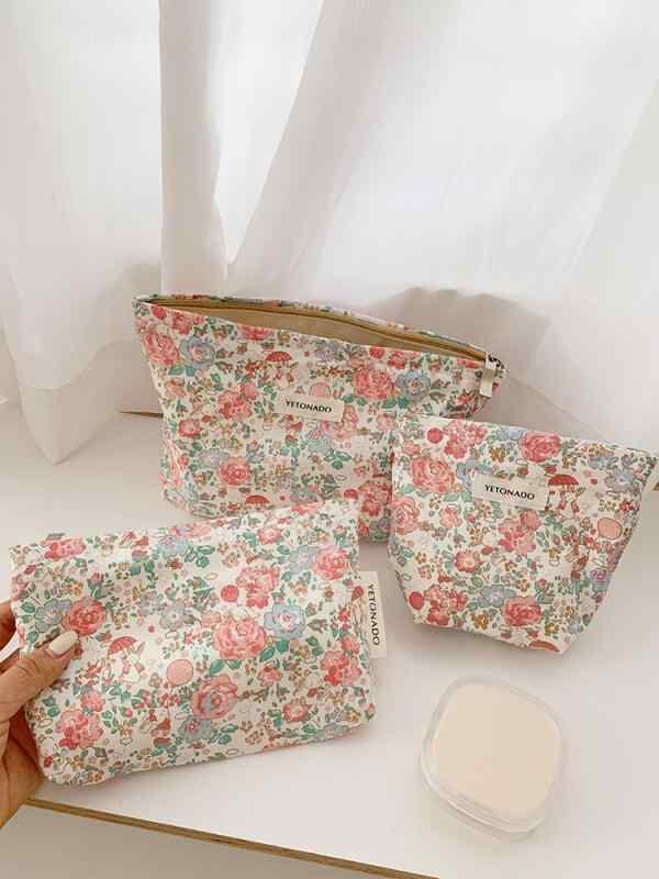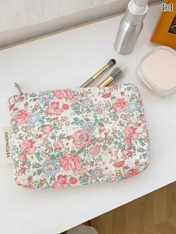 化粧ポーチ レディース かわいい 清潔感 大容量 メイク用品 整理整頓 小物入れ バッグインバッグ クラッチバッグ コットン キャンバス 花柄