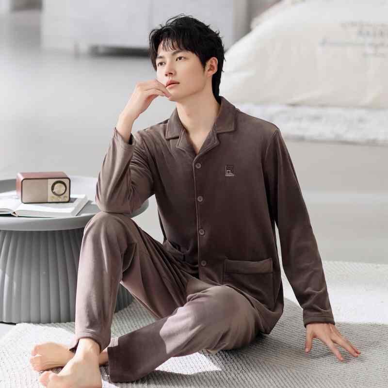 パジャマ メンズ 秋冬 寝間着 ルームウェア 部屋着 上下セット セットアップ 海島フリース サンゴフリース フランネル 裏起毛 厚手 保温 快適 前開き 襟付き 長袖 長ズボン カジュアル リラックス 普段使い