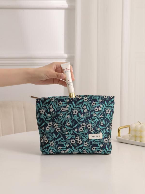 化粧ポーチ レディース レトロ クラシカル ジャカード織り 花柄 プリント エンボス加工 キャンバス クラッチバッグ 手提げ 携帯 コスメ スキンケア トラベル 小銭入れ グリーン系 日常使い 収納