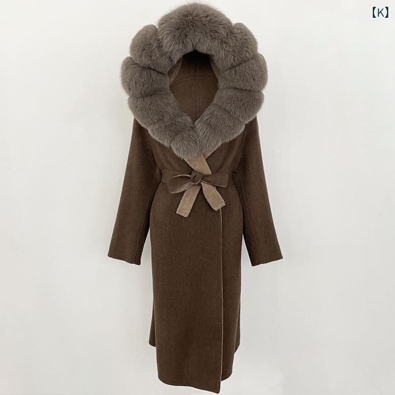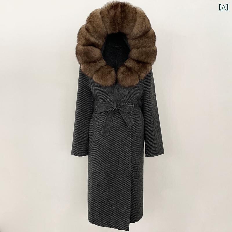 コート レディース 秋冬 フレンチヘップバーン風 エレガント ブラック ウール メルトン ロングコート 高級感 ウエストマーク きれいめ 通勤 オフィス フォックスファー襟 アウター