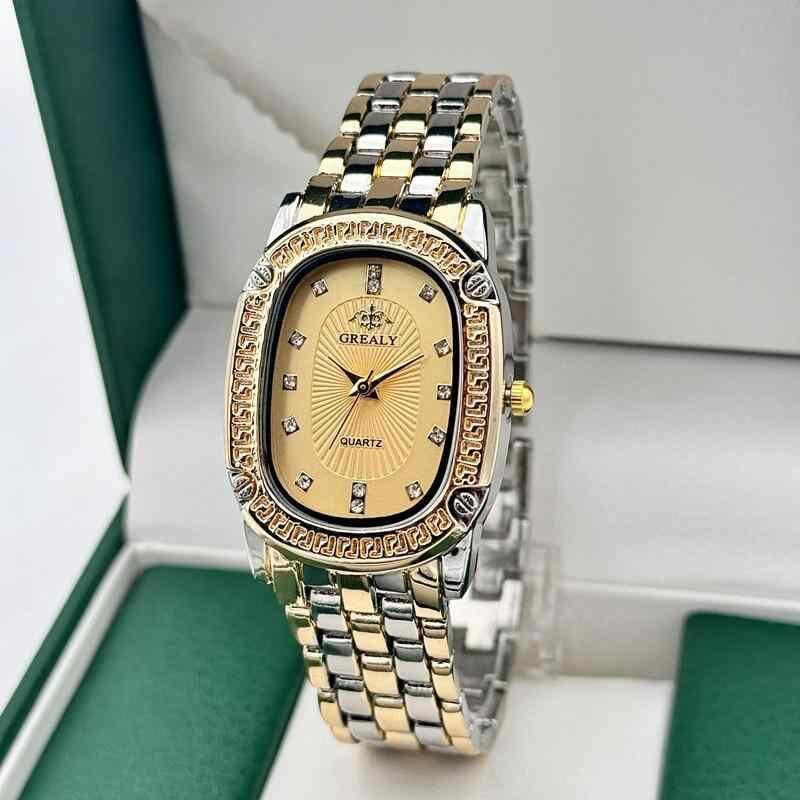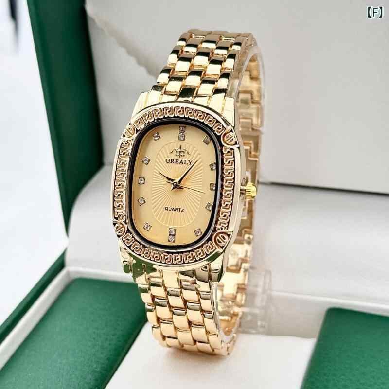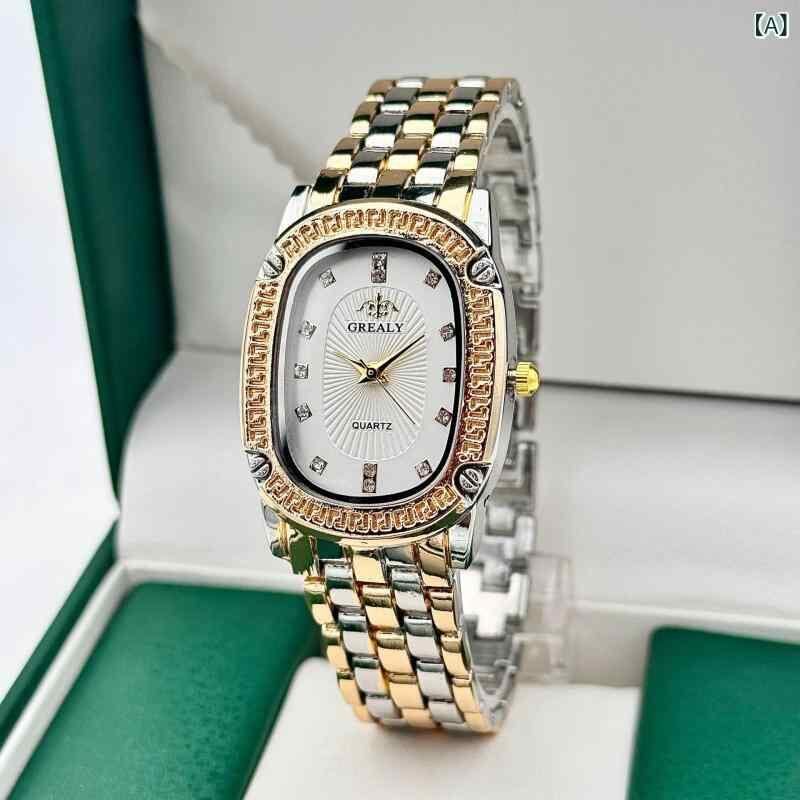腕時計 レディース 女性用 ファッション おしゃれ 楕円 オーバル カットガラス クォーツ アナログ 上品 エレガント 薄型 合金 ミネラル強化ガラス ゴールド シルバー バイカラー 宝飾留め具 オフィス カジュアル ドレッシー