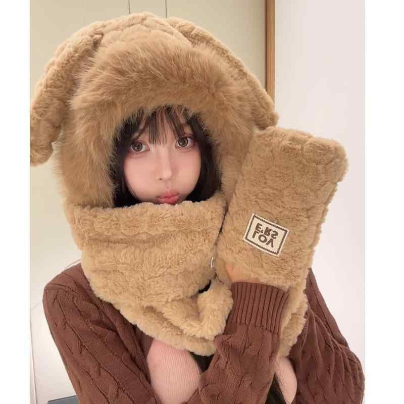 帽子 レディース うさ耳 もこもこ ボア マフラー 手袋 フェイスカバー ネックウォーマー 一体型 3WAY 防寒 保温 秋冬 サイクリング 自転車 普段使い あったか