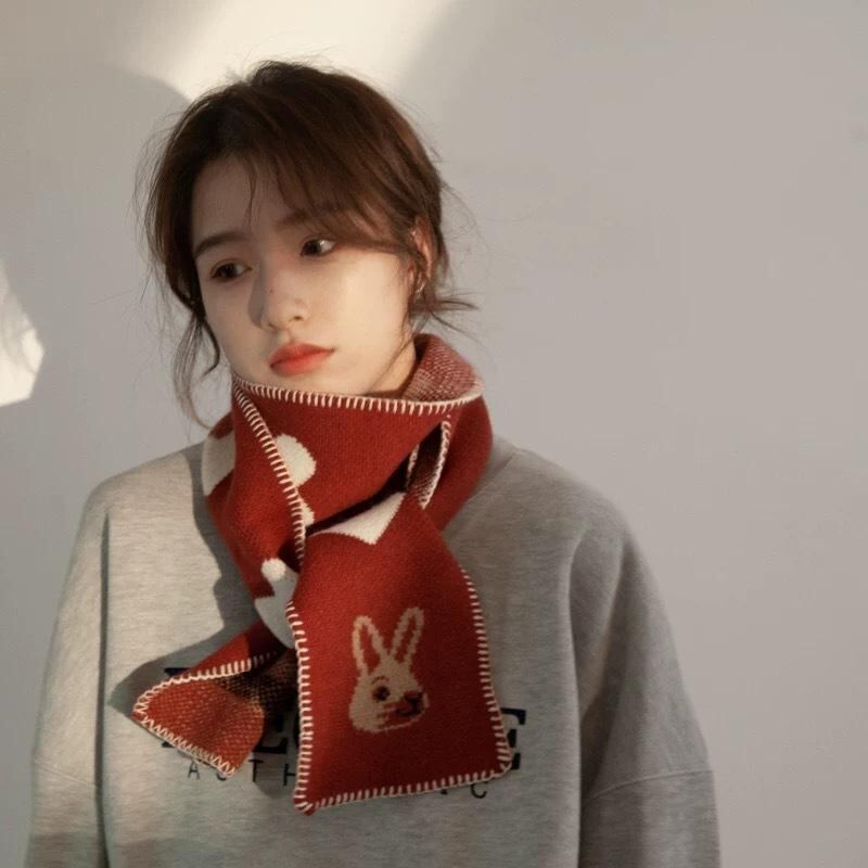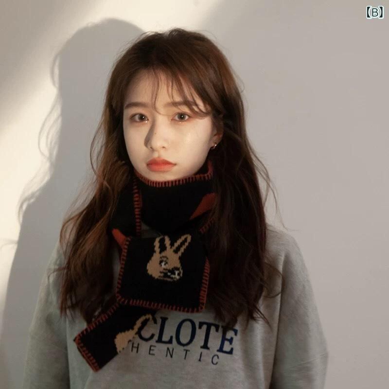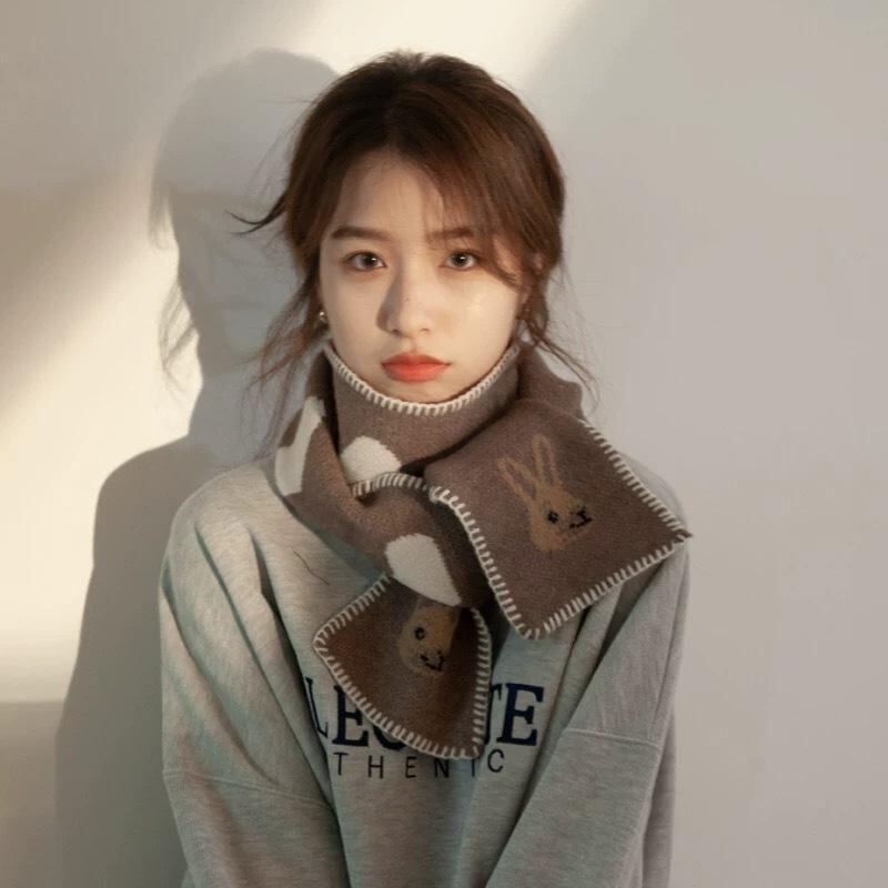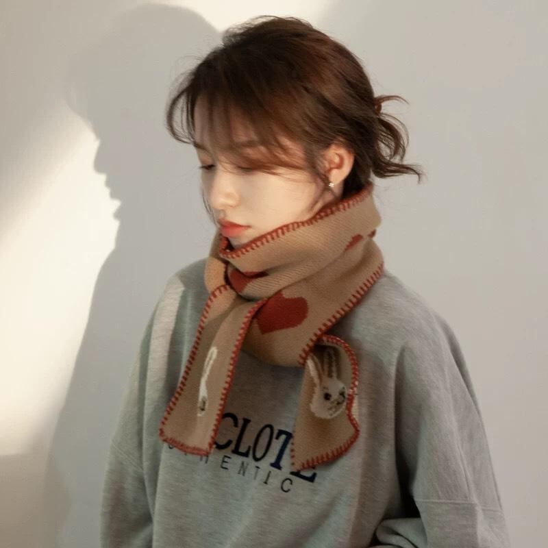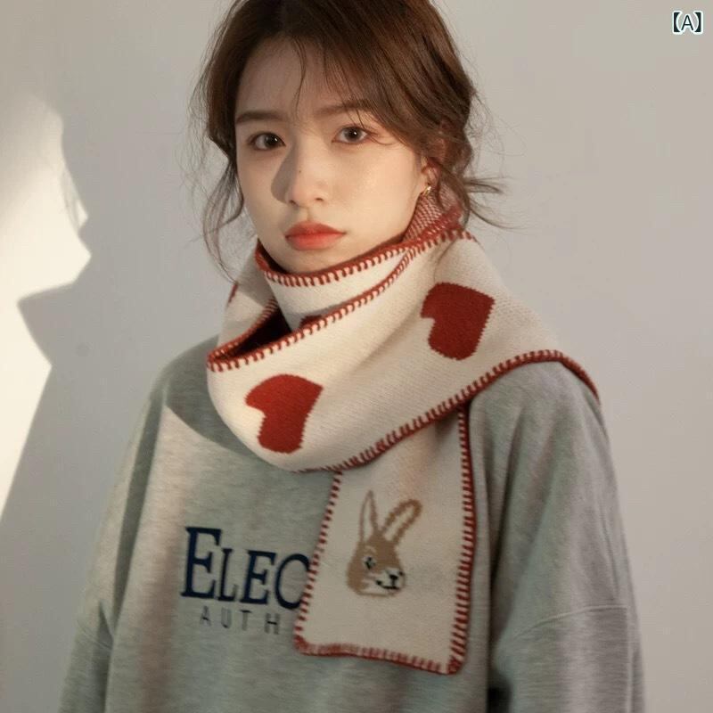 マフラー レディース 韓国風 デザイン かわいい ハート うさぎ ウール ニット ロング 保温 防寒 秋冬 スクール風