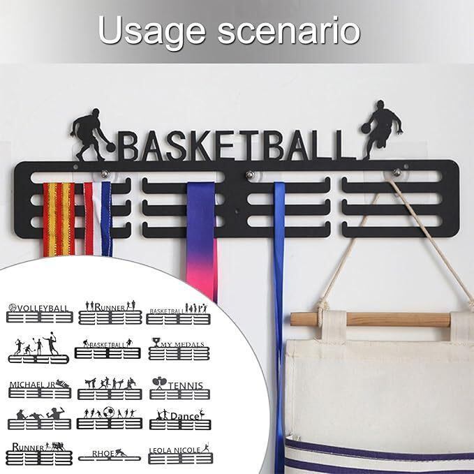 メダルハンガー アイアン製 記念メダル 勲章 収納 ディスプレイラック 穴あけ不要 壁掛け スポーツ 野球 バスケットボール デザイン おしゃれ モダン インテリア
