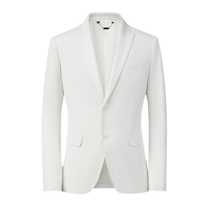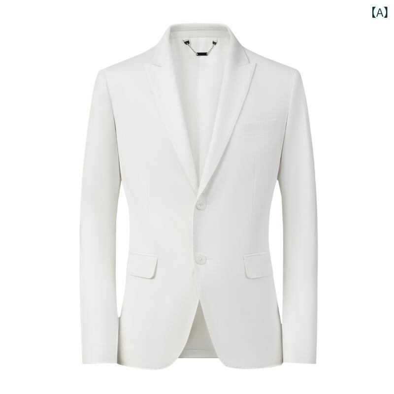 テーラードジャケット メンズ 男性用 ビジネス カジュアル オフィス 通勤 普段使い スリムフィット 細身 シングルブレスト2つボタン テーラードカラー ノーアイロン加工 ポリエステル混紡 ホワイト 白 無地 韓国風 レギュラー丈